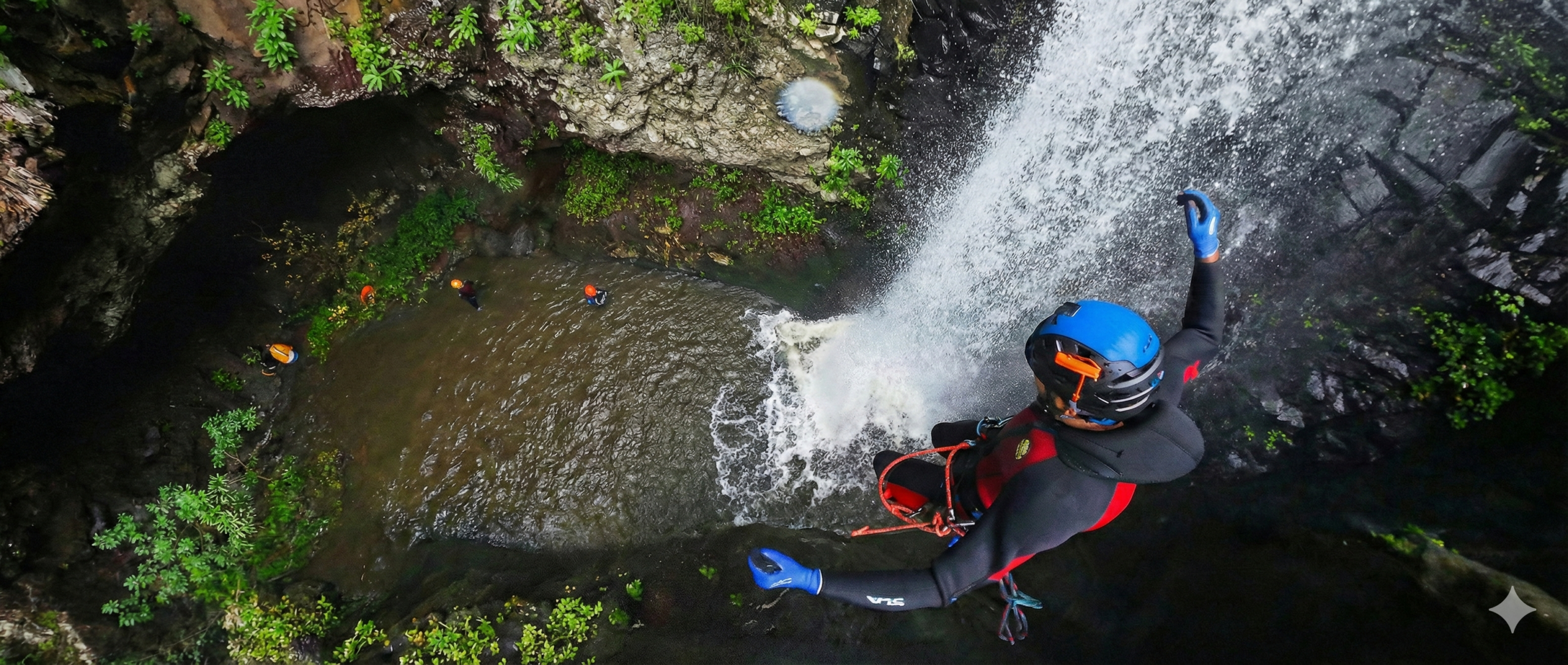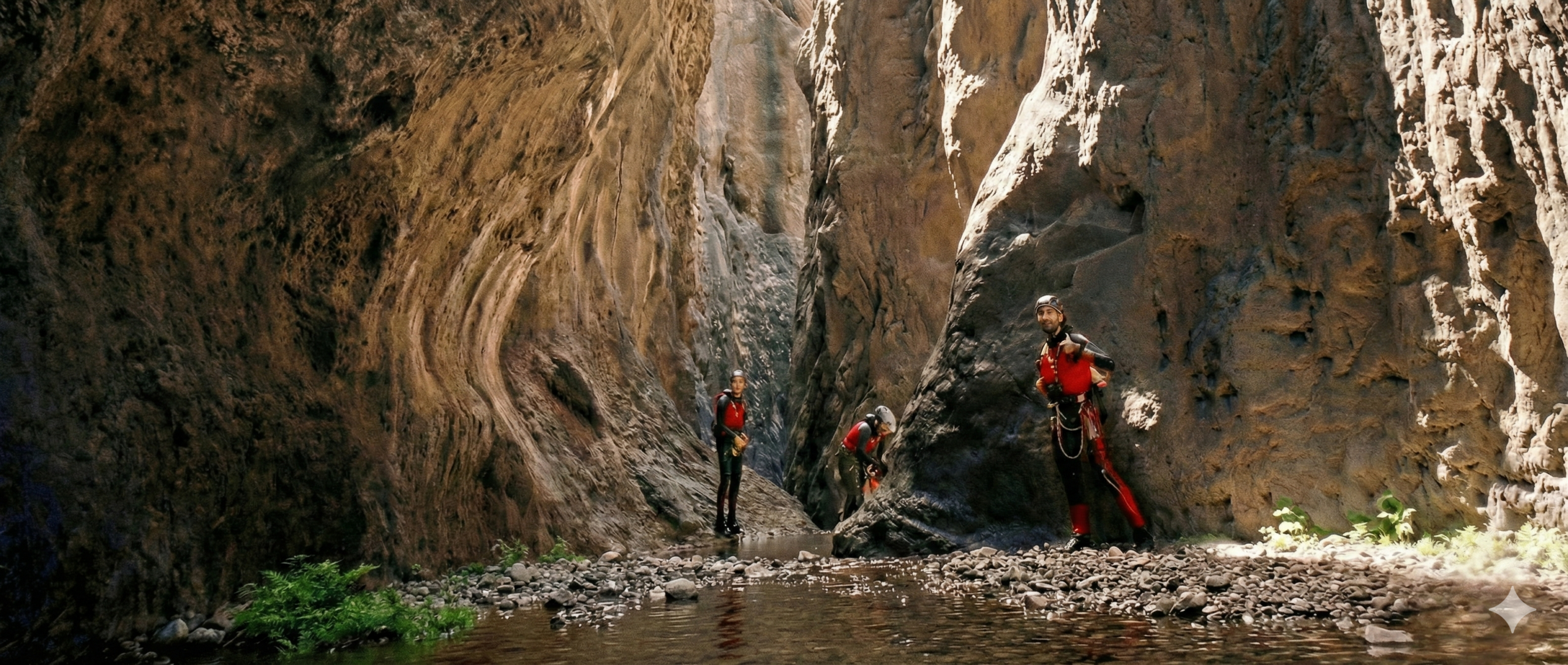 Los Carrizales to kanioning wodny w dzikim wąwozie, gdzie poruszasz się wzdłuż górskiego potoku i pokonujesz naturalne przeszkody: progi skalne, wodospady, zwężenia i naturalne baseny. To połączenie zjazdów na linie z elementami wodnymi: brodzeniem, krótkim pływaniem, skokami do wody oraz ślizgami po skałach.
